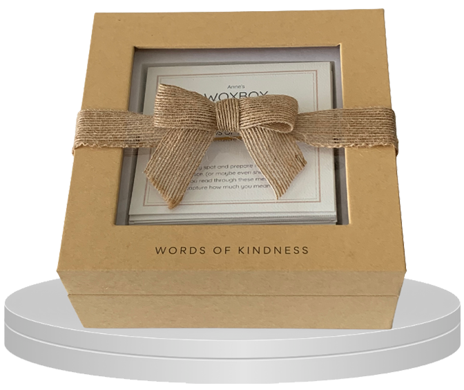 This inspired the creation of "words of kindness" boxes, crafted with love and made for friends and family over many years. These gift boxes were treasured and we would often hear they were the best gift they had ever received.